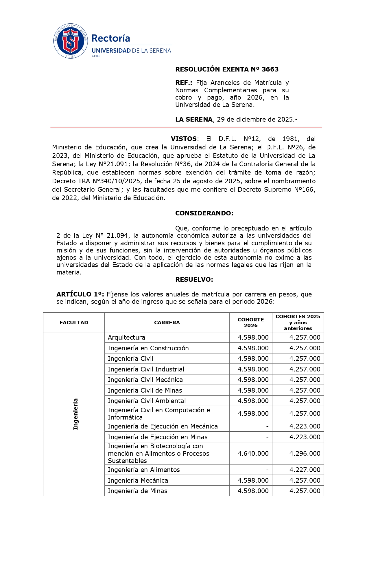 Ley de transparencia > Decretos Universitarios > Resolucion exenta 3663 2025
